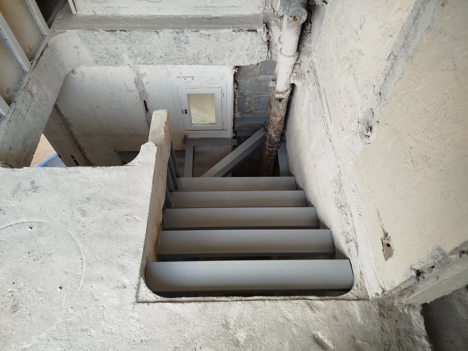 Dans le prolongement de la trémie, OMPT GROUPE a conçu et installé un escalier métallique sur mesure, composé d’une structure en acier UPN, de marches en fer plat, complétées par des marches béton coffrées, avec une protection antirouille sur l’ensemble de la structure.