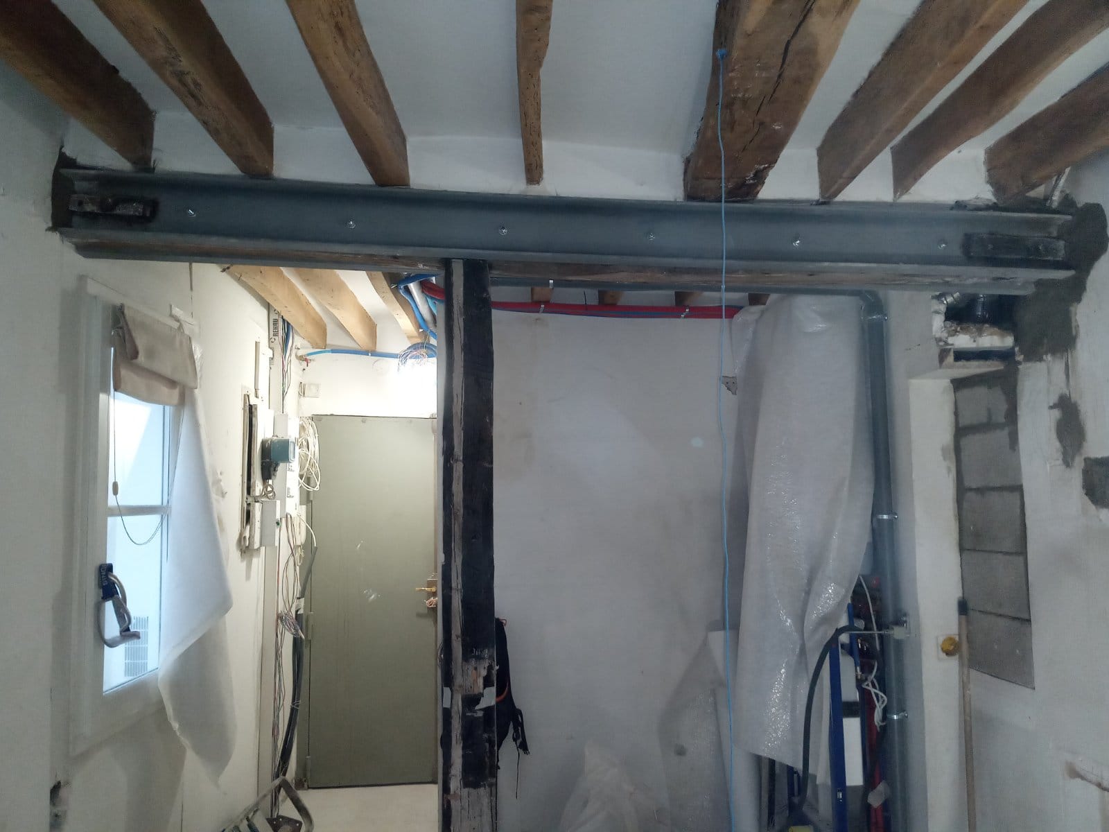 En plus de l’ouverture de murs porteurs, la société OMPT est aussi spécialisée dans la consolidation par structure métallique et le renforcement de poutres en bois.