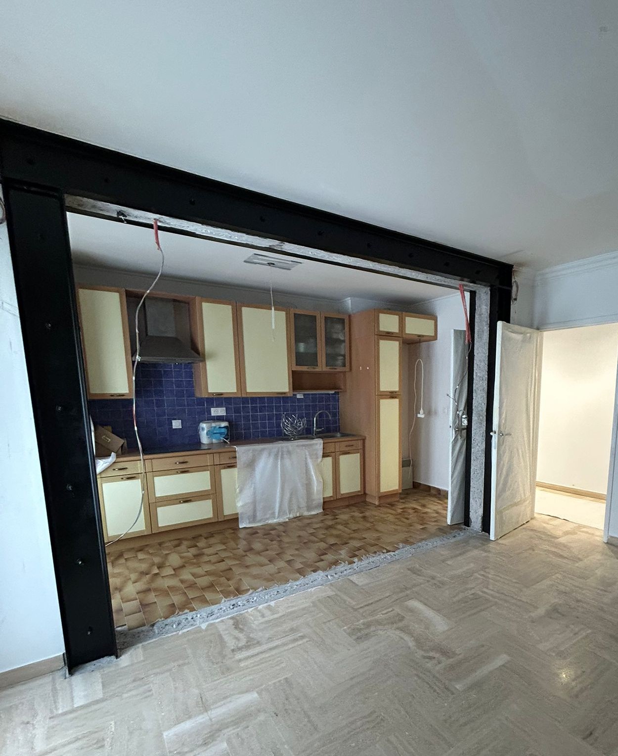 Ce chantier a été effectué dans le cadre d’un projet de cuisine ouverte, nécessitant une ouverture large et sécurisée dans un mur porteur existant.
